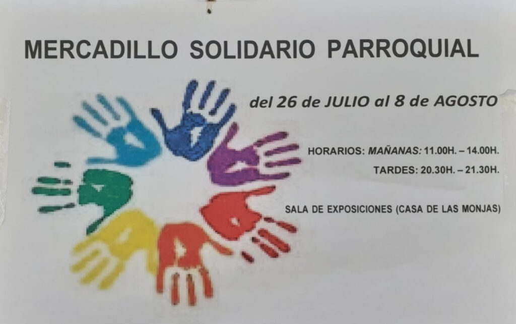 Mercadillo Solidario Publicación de la entrada:28 julio 2023 Categoría de la entrada:Actualidad 𝐌𝐞𝐫𝐜𝐚𝐝𝐢𝐥𝐥𝐨 𝐬𝐨𝐥𝐢𝐝𝐚𝐫𝐢𝐨 ¡como cada verano, llega el tradicional mercadillo solidario! 📆 26 de Julio al 8 de Agosto 🕜 De 11h a 14h y de 20:30h a 21:30h 📍Fundación Perlado Verdugo (Casa de las monjas)👏¡Colabora! También podría gustarte Ayuntamiento de Jadraque Carta a los vecin@s 13 abril 2020 Escuela de Adultos 21 septiembre 2021 Santa Àgueda 2025 14 enero 2025