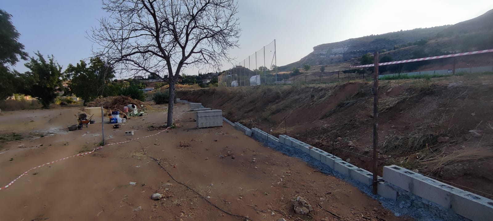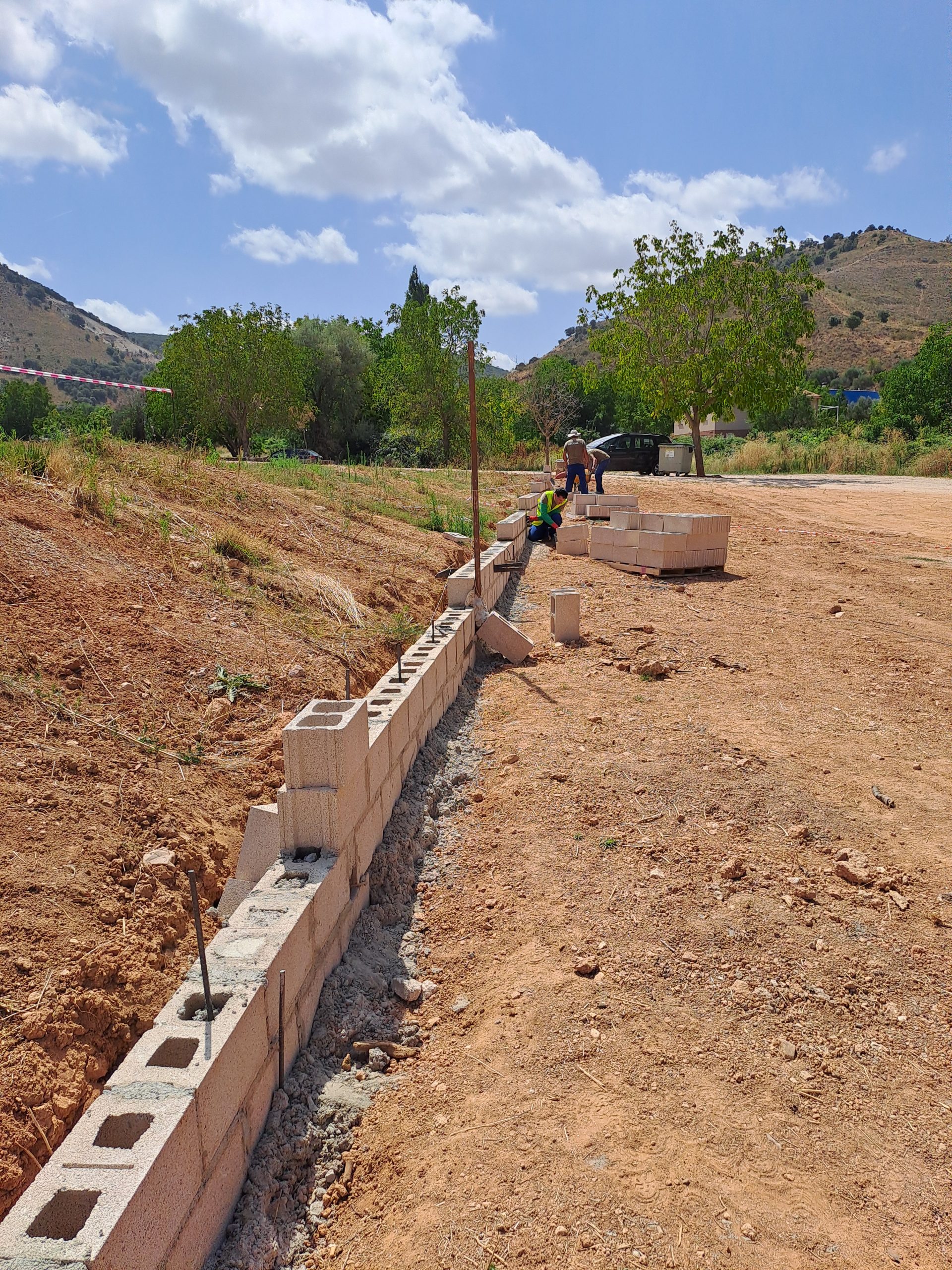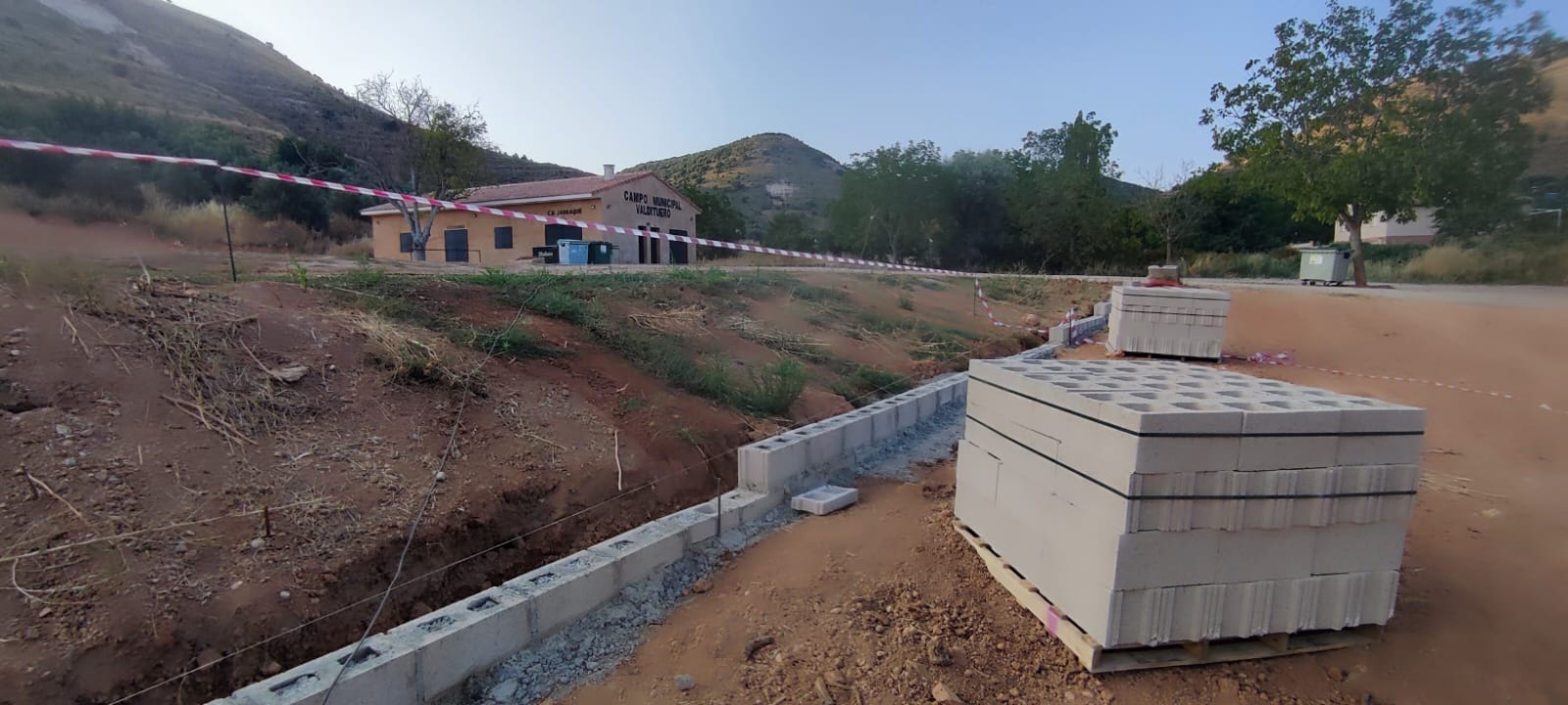 En las últimas semanas de agosto, se han iniciado los trabajos de construcción del muro en la zona del parking.