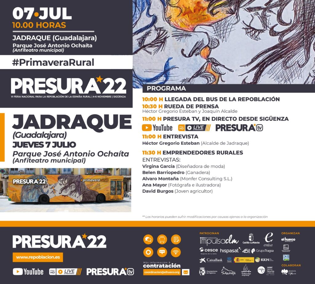 La Feria Presura se da a conocer en nuestro municipio el próximo Jueves 7 de Julio de 2022,la VI edición de feria de la repoblación en el mundo rural se celebrará en Sigüenza los próximos 4,5 y 6 de Noviembre de 2022.