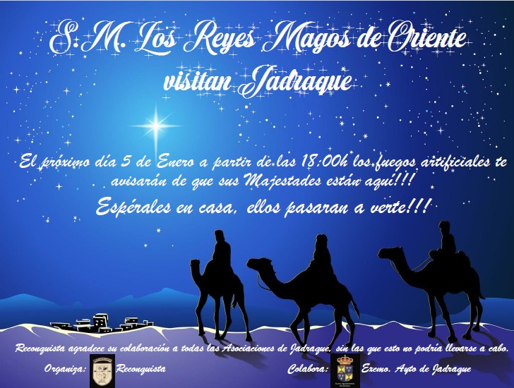 Reyes 2021 Publicación de la entrada:3 enero 2021 Categoría de la entrada:Actualidad Los Reyes Magos visitaran a los niños en sus casas la tarde del 5 de enero. También podría gustarte Cofradía San Antón 9 enero 2024 Educador Social 5 diciembre 2019 Romeria de Valvuena 9 mayo 2024