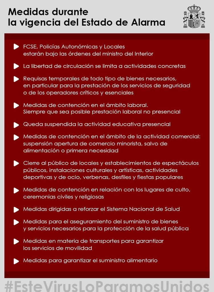 Medidas Covid-19 Publicación de la entrada:12 marzo 2020 Categoría de la entrada:Actualidad / Avisos En los adjuntos a esta información puede consultar todas las medidas adoptadas por el Gobierno durante el estado de alarma así como las adoptadas para circular por las vías de uso público También podría gustarte Recuperacion de la fuente de la Paloma 7 noviembre 2021 Defensa del Ferrocarril 25 agosto 2020 Prueba MTB: IV Senderos del Cid 15 junio 2023