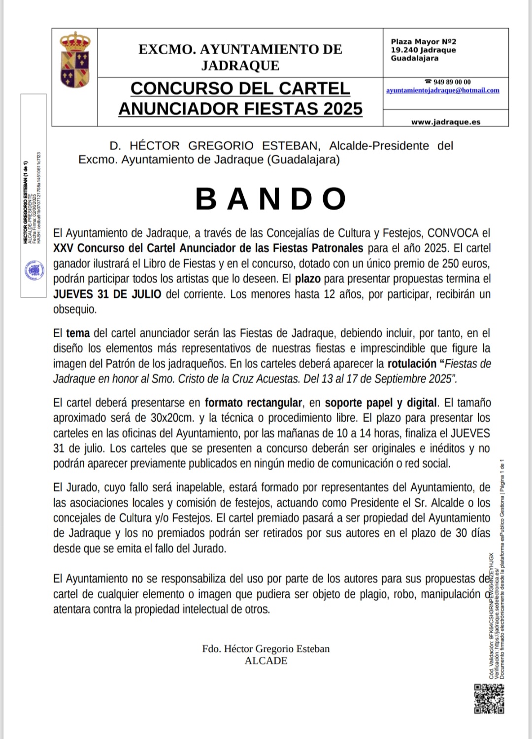 Tenéis todas las normas y pasos a seguir en este bando informativo, recordad que el plazo es hasta el 𝗝𝗨𝗘𝗩𝗘𝗦 31 𝗗𝗘 𝗝𝗨𝗟𝗜𝗢,si eres menor de 12 años recibirás un obsequio por participar.