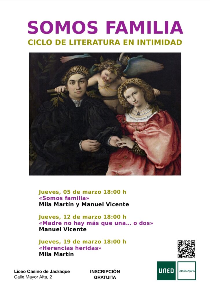 La familia, los vínculos, las herencias emocionales y los afectos centran este ciclo literario que se celebrará en la UNED de Guadalajara – sede de Jadraque, con la participación de Mila Martín y Manuel Vicente.
