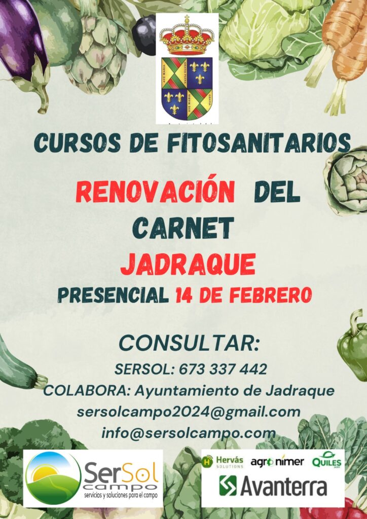 El próximo 14 de febrero se celebrará en Jadraque un curso presencial para la renovación del carné de productos fitosanitarios, dirigido a profesionales del sector agrícola que necesiten actualizar su acreditación.