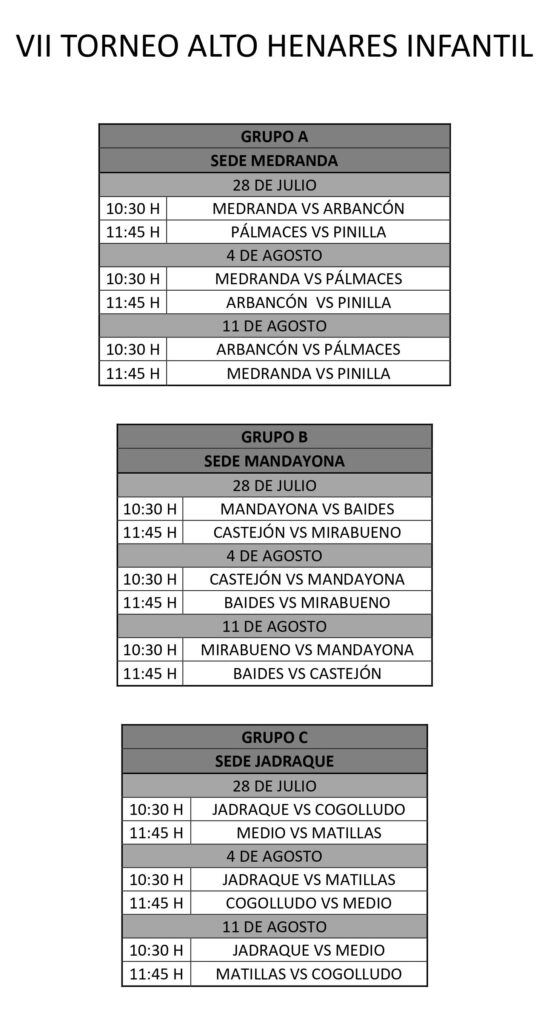 Cada jornada tendrá dos partidos, que se jugarán a las 10:30h y a las 11:45h.