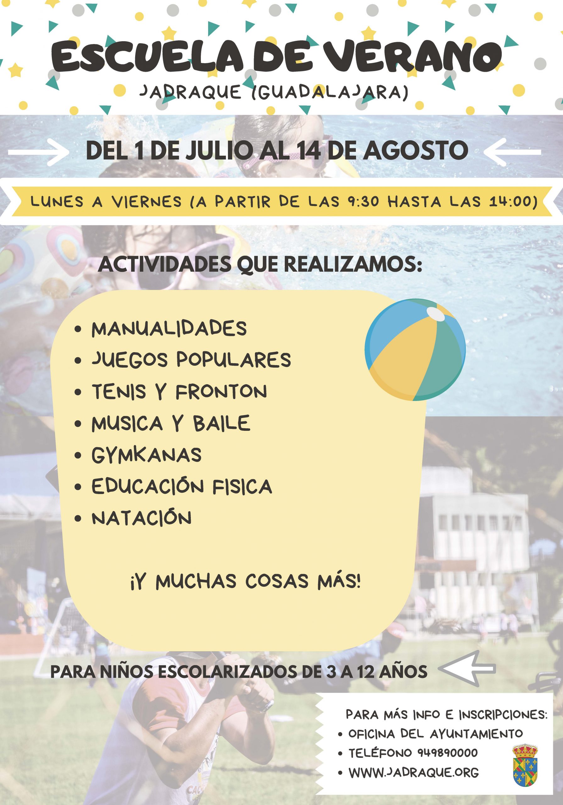 Abierto el plazo de inscripción para participar en la Escuela de Verano 2019. Las inscripciones pueden presentarse en las Oficinas Municipales hasta el miércoles 19 de junio.