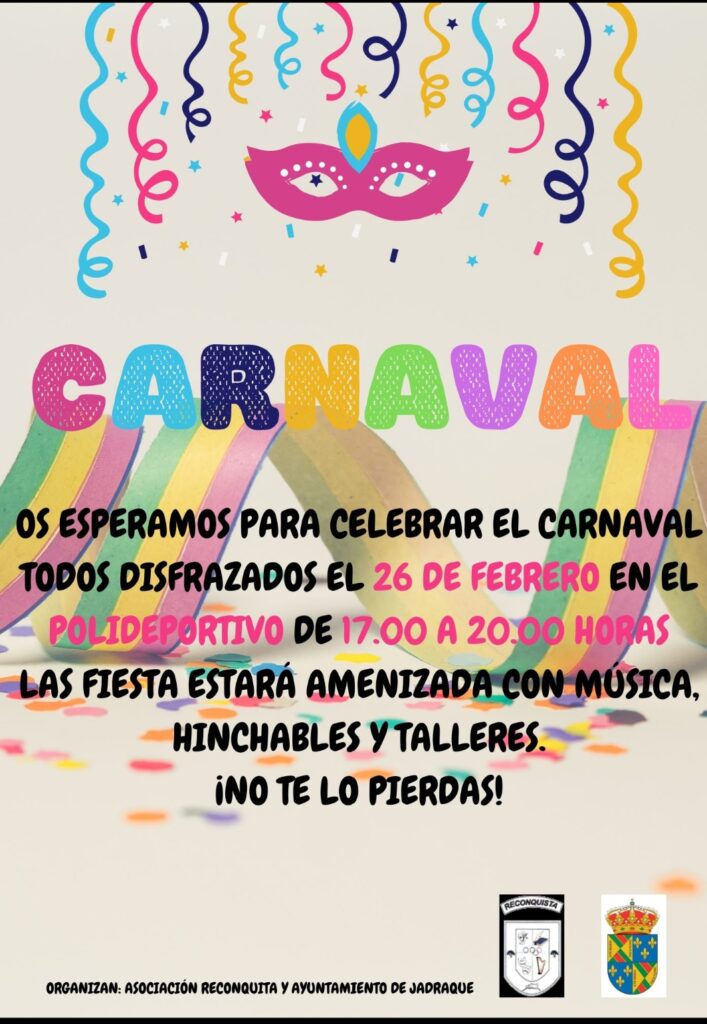 El próximo Sábado 26 de Febrero el Ayuntamiento de Jadraque junto con la Asociación Reconquista celebrará de nuevo el carnaval.