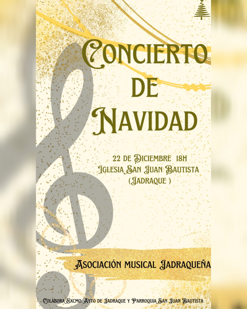Concierto de Navidad Publicación de la entrada:13 diciembre 2024 Categoría de la entrada:Cultura ᏟϴΝᏟᏆᎬᎡͲϴ ᎠᎬ ΝᎪᏙᏆᎠᎪᎠ 𝔄𝔰𝔬𝔠𝔦𝔞𝔠𝔦𝔬́𝔫 𝔪𝔲𝔰𝔦𝔠𝔞𝔩 𝔍𝔞𝔡𝔞𝔮𝔲𝔢𝔫̃𝔞 El próximo domingo 22 de diciembre, volveremos a disfrutar del tradicional concierto de navidad ofrecido por la banda de música de la Asociación Musical Jadraqueña. Iglesia de San Juan Bautista a las 18:00H¡Seguimos con los actos de navidad! También podría gustarte XX Edición minimaratón de cuentos 18 agosto 2022 Pregón de Navidad 27 diciembre 2012 Jubilados campeonatos 10 agosto 2012