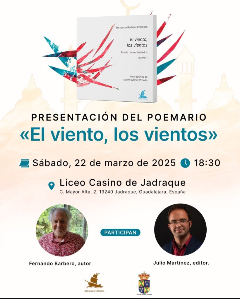 El Viento, los vientos Publicación de la entrada:16 marzo 2025 Categoría de la entrada:Cultura 𝙿𝚛𝚎𝚜𝚎𝚗𝚝𝚊𝚌𝚒𝚘́𝚗 𝙿𝚎𝚘𝚖𝚊𝚛𝚒𝚘: 𝙀𝙡 𝙑𝙞𝙚𝙣𝙩𝙤, 𝙡𝙤𝙨 𝙫𝙞𝙚𝙣𝙩𝙤𝙨 📆 Sábado 22 de marzo de 2025 en el 📍 Liceo Casino de Jadraque 🕜 18:30h ✍🏻 Con Julio García y Fernando ¡Te esperamos! También podría gustarte Programación Cultural Otoño 18 noviembre 2020 Teatro Rosa Navidad 27 marzo 2025 Teatro 22 abril 2013