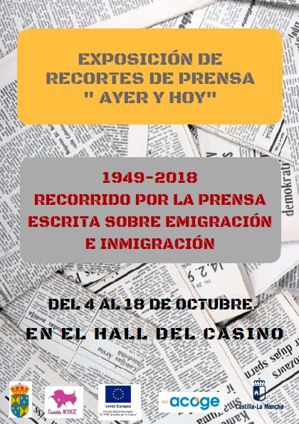 Exposición Publicación de la entrada:30 septiembre 2019 Categoría de la entrada:Cultura Guada Acoge expondrá del 4 al 18 de octubre en la planta baja del Liceo Casino una colección de recortes de prensa 1949-2018 sobre migraciones. Entrada libre. También podría gustarte Cine de Verano 13 agosto 2013 Cine de Verano 1 junio 2017 Cine 24 enero 2020