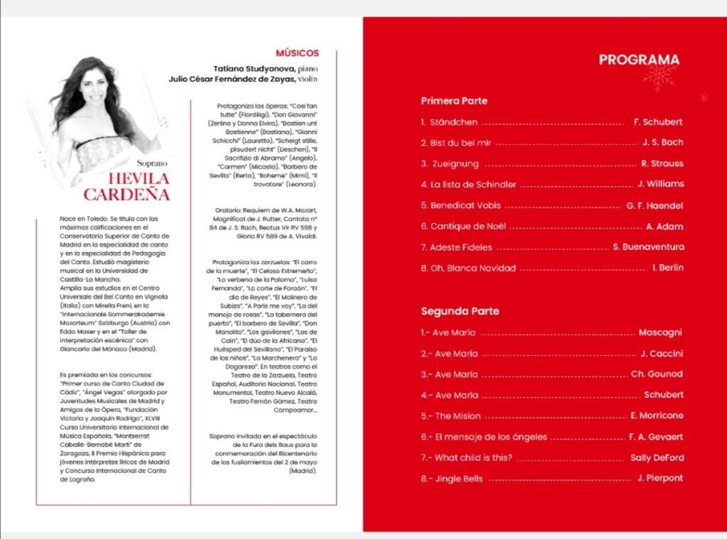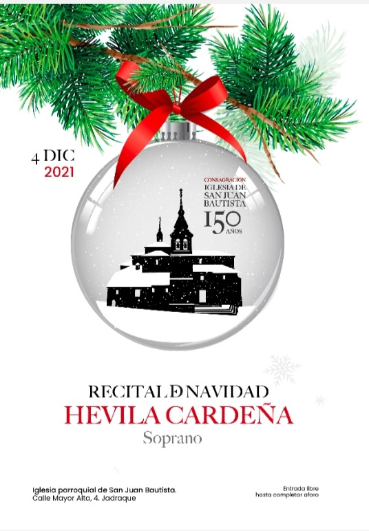 El próximo Sábado tendrá lugar el gran concierto soprano dentro de las actividades organizadas durante la exposición «Los Zurbaranes de Jadraque» que estará presente en nuestro municipio hasta el próximo 16 de Enero , a cargo de reputada Hevilia Cardeña.