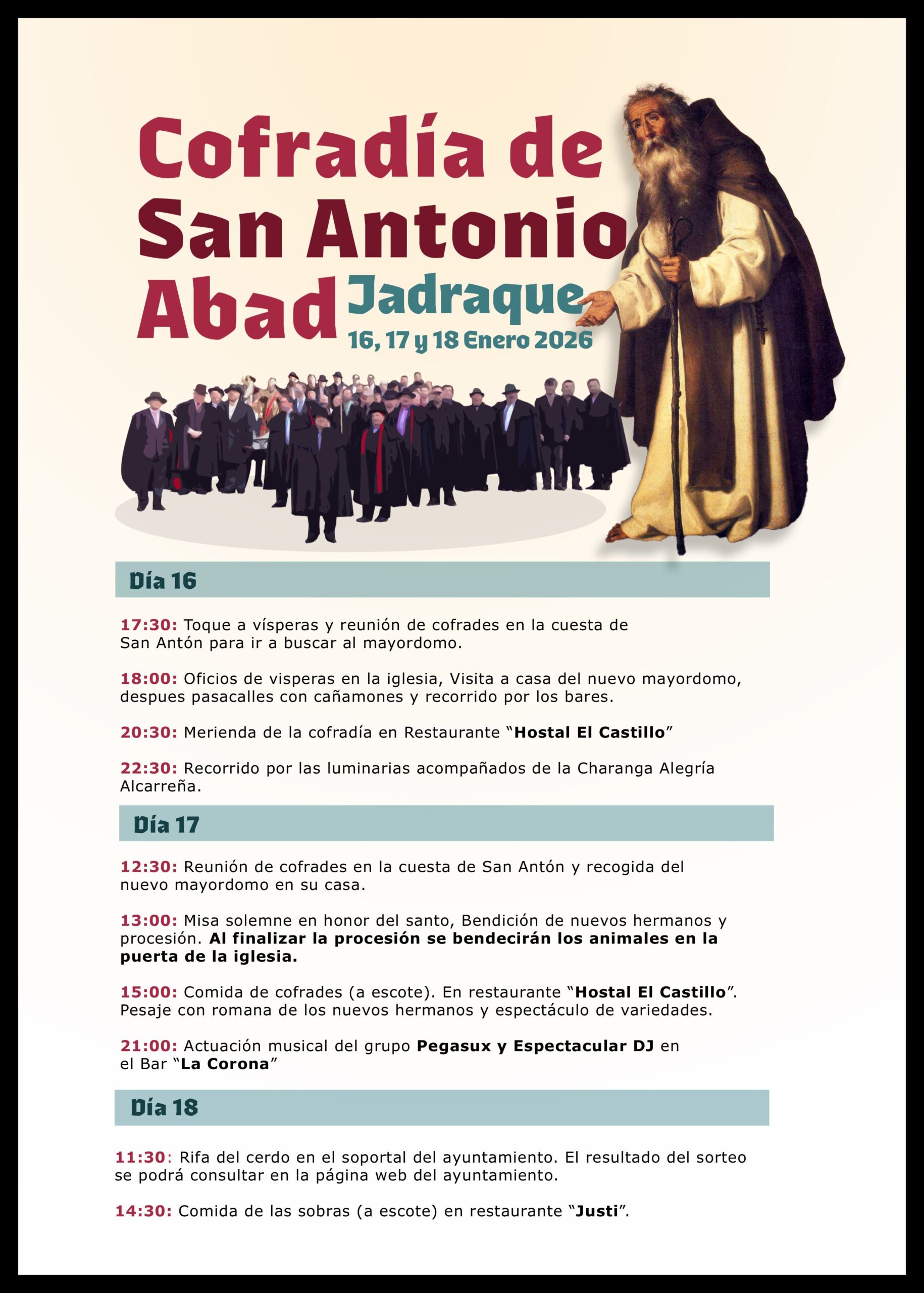 San Antón inaugurará las festividades, que se celebrarán del 16 al 18 de enero.