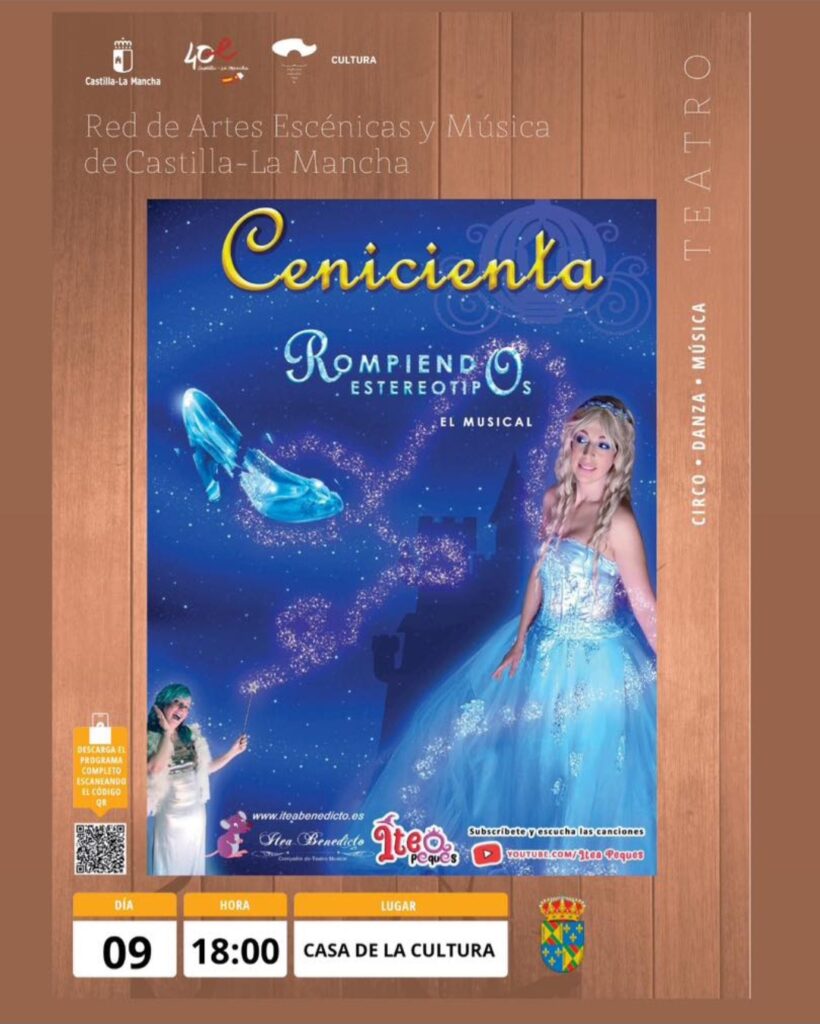 Teatro Infantil: La Cenicienta Publicación de la entrada:4 diciembre 2023 Categoría de la entrada:Cultura TEATRO INFANTIL: LA CENICIENTA La red de artes escenicas y musica de castilla la mancha presenta en nuestro municipio este maravilloso teatro para los mas peques de la casa. Os esperamos este SABADO dia 9 de DICIEMBRE a las 18:00 en la CASA DE LA CULTURA. También podría gustarte Exposición 9 agosto 2012 Feria Chica 2022 2 mayo 2022 Cine Infantil 22/10/2022 1 octubre 2022