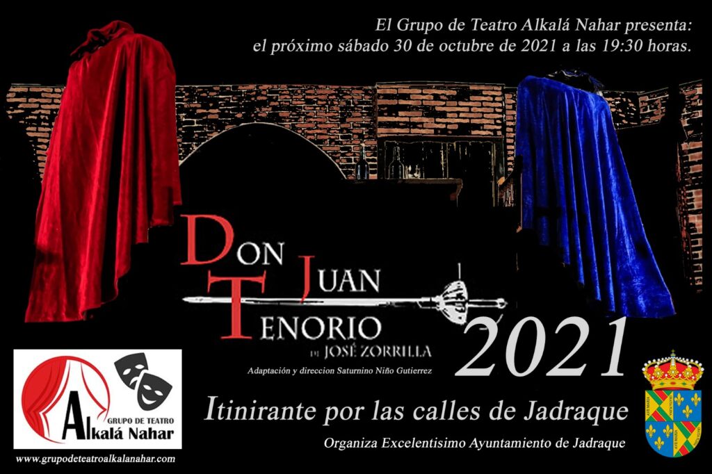Tras el éxito del primer año y la obligada suspensión provocada por el COVID-19 en el año 2020,el próximo 𝗦𝗮́𝗯𝗮𝗱𝗼 30 𝗱𝗲 𝗢𝗰𝘁𝘂𝗯𝗿𝗲 𝗮 𝗹𝗮𝘀 19,30 volveremos a contar con el Teatro itinerante 𝐃𝐨𝐧 𝐉𝐮𝐚𝐧 𝐓𝐞𝐧𝐨𝐫𝐢𝐨 por varios escenarios de nuestro municipio ,como son, Plaza Gutiérrez de Luna, Iglesia de San Juan Bautista o Plaza Mayor entre otros.
