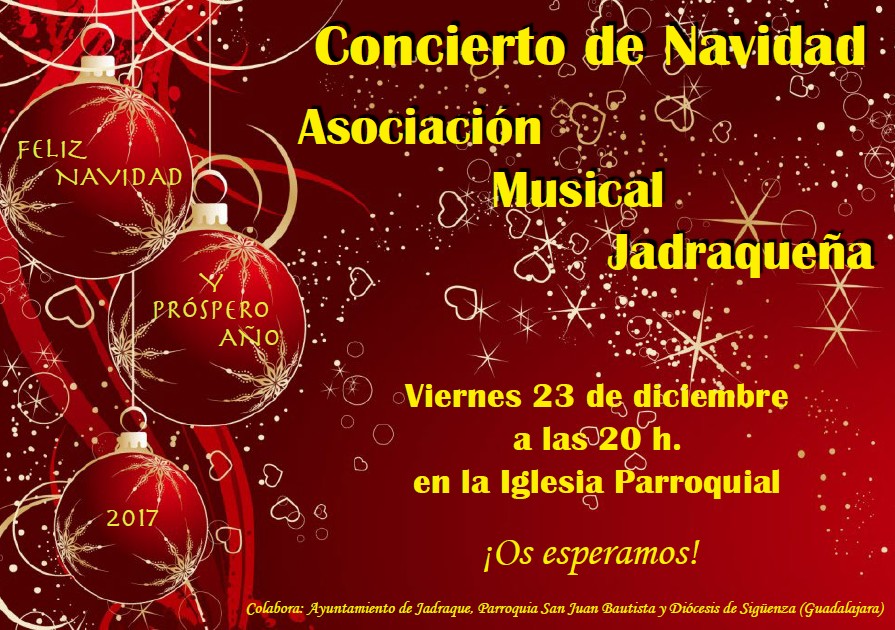 Concierto de Navidad Publicación de la entrada:24 diciembre 2016 Categoría de la entrada:Fiestas Emocionante concierto de Navidad de la Banda de la Asociación Musical Jadraqueña. Enhorabuena a los músicos de todas las edades. Feliz Navidad a todos. También podría gustarte Peña Taurina 15 noviembre 2014 Bendición de campos 1 mayo 2017 Fiesta Jubilados 20 febrero 2020