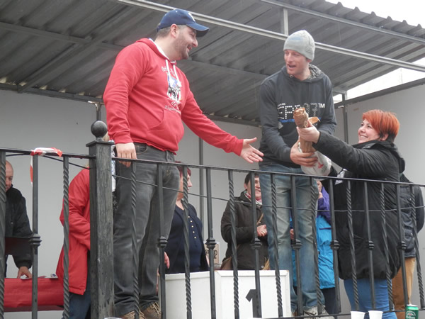segundo_premioEl segundo premio ha sido para la caldera número 21, formada por también por un grupo asiduo a la fiesta y representada por José Luis Camino y Mario Granizo. El presidente de la Diputación de Guadalajara, José Manuel Latre, ha sido el encargado de entregar este premio, un cochinillo y caja de vino a los ganadores. Por su parte, los representantes de esta caldera han dedicado el premio a Javi, amigo y miembro del grupo de las migas, fallecido hace pocos meses en un accidente de vuelo.