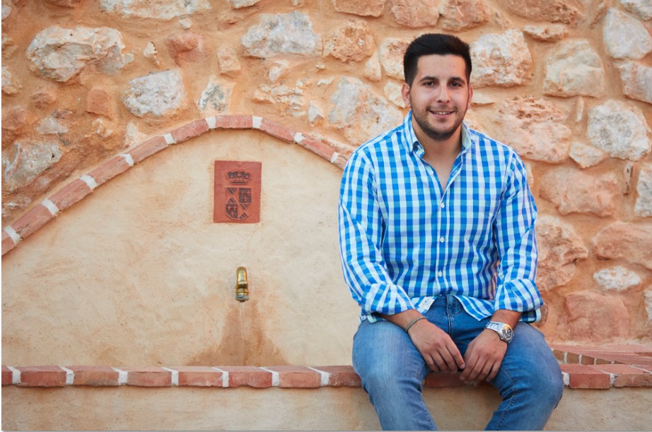 El encargado de pregonar las Fiestas 2016 asegura que la propuesta de ofrecer el Pregón de las Fiestas de su pueblo le sorprendió, a la vez que le ha hecho mucha ilusión aceptar ese reto. Ángel afirma que le gusta su pueblo y quizá por eso ha elegido un bello y  escondido rincón para hacerse la foto “oficial”, la nueva fuente de la calle de Santa Ana.