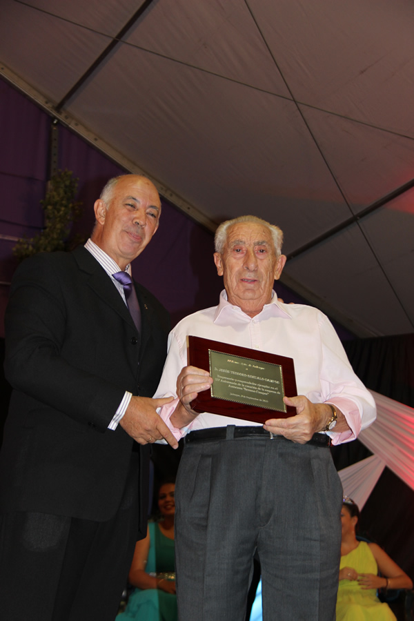 El homenaje al empresario ejemplar de la localidad fue en esta ocasión para Fidel Burgos Moreno, por toda una vida de trabajo y esfuerzo. Fidel Burgos, aunque ya jubilado, es una referencia para los empresarios locales, porque a sus 87 años ha visto como sus hijos continúan con el negocio familiar que él puso en marcha junto a su esposa en su juventud, que no es otro que la Discoteca “Burna 10”.