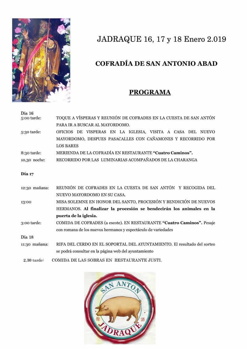 San Antón Publicación de la entrada:17 enero 2018 Categoría de la entrada:Fiestas La Cofradía celebra su Día Grande y los nuevos hermanos, incluidos los infantiles, garantizan la continuidad de la fiesta También podría gustarte Galeria Migas 2016 11 diciembre 2016 Castiblanco 2016 14 julio 2016 Santo Ángel 2014 27 febrero 2014