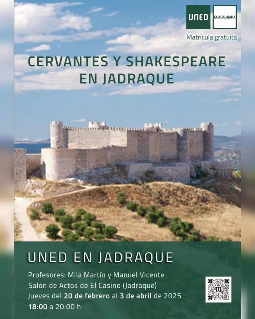 UNED EN JADRAQUE Publicación de la entrada:14 febrero 2025 Categoría de la entrada:Sin categoría Desde el próximo jueves 20 de febrero, comienza el curso: Cervantes y Shakespeare, de 8 sesiones, impartido por UNED en Jadraque. Todos los jueves a las 18h en el Liceo Casino de Jadraque. Matrícula abierta y gratuita. También podría gustarte inicio 10 octubre 2024 II Liga de petanca “Pedro Rojo” 30 mayo 2025 VII Liga provincial de debates 30 mayo 2025